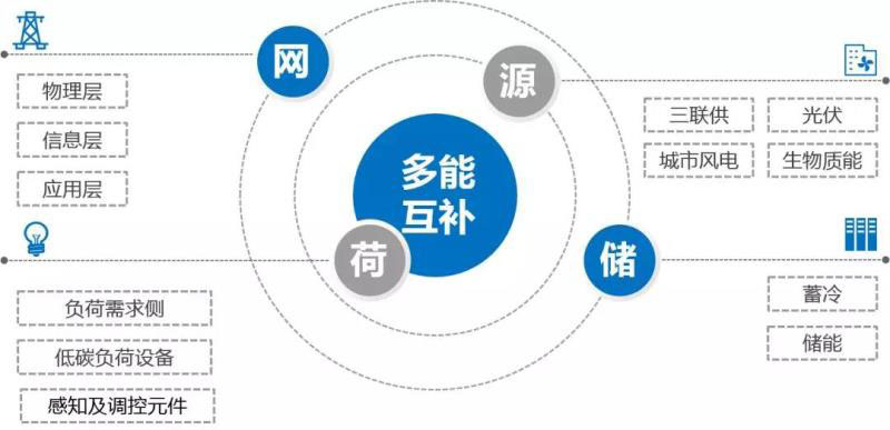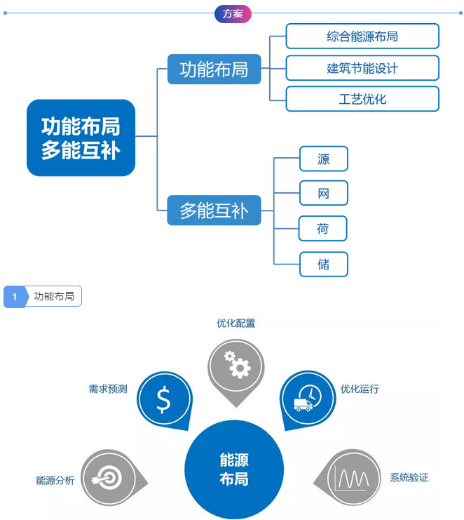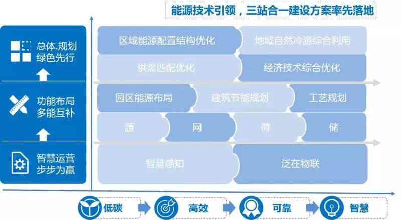 以能源為主線,由時間維度的建設(shè)目標(biāo)及空間尺度的技術(shù)路線組成的坐標(biāo)體系下實現(xiàn)全過程、全方位的能源解決方案拼圖。