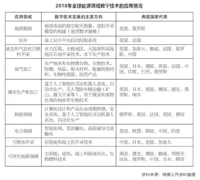 2018年全球能源數(shù)字化技術(shù)涵蓋了油氣勘探開發(fā)、加工、運輸、儲存,能源分配,廢物利用、能源貿(mào)易等環(huán)節(jié),這些技術(shù)達到了優(yōu)化生產(chǎn)、提高能源供應(yīng)可靠性和提升能源安全性的目的。