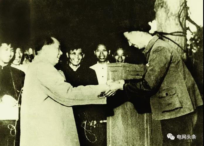 ▼毛主席握著工人宋學(xué)林(右一)的手說:“你們真了不起!”