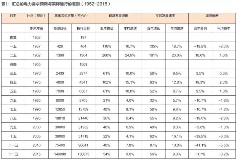 從過去的實踐來看,大部分人的運氣是不佳的。以官方發(fā)布的電力五年規(guī)劃為例,孫壽廣等人曾做過一個很好的回顧。他們的統(tǒng)計匯總顯示,對于我國這樣一個大國,體量很大,年度電力需求增長,其本來就在一個比較窄的可能區(qū)間上(起碼過去不可能高于20%,也不可能低于-5%),其預(yù)測偏差都少則0.3個百分點,多則6個百分點。請注意:是百分點,而不是百分比。如果按百分比算誤差,6個百分點的誤差接近100%。