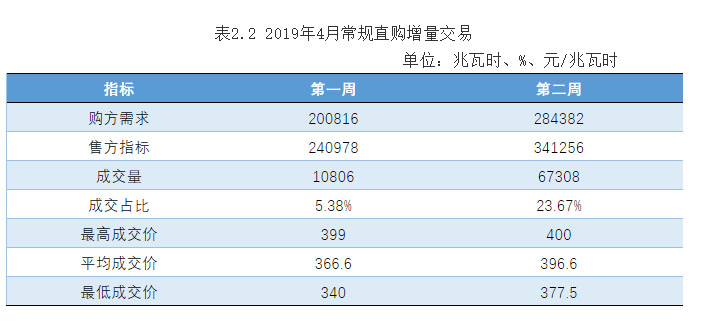 圖2.3 2019年4月常規(guī)直購(gòu)增量交易(第一周)