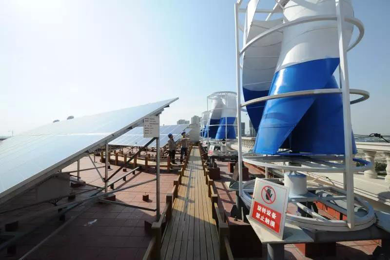 天津電力建設(shè)運(yùn)營(yíng)的北辰商務(wù)中心綜合能源服務(wù)示范項(xiàng)目通過(guò)利用北辰商務(wù)中心屋頂、停車場(chǎng)及相鄰湖面等場(chǎng)地資源,建設(shè)了太陽(yáng)能光伏發(fā)電、風(fēng)力發(fā)電、風(fēng)光儲(chǔ)微網(wǎng)、地源熱泵、電動(dòng)汽車充電樁,并將5個(gè)系統(tǒng)集約至一個(gè)綜合能源智慧管控平臺(tái),實(shí)現(xiàn)了新能源自發(fā)自用,多種能源互聯(lián)互補(bǔ)。在記者采訪當(dāng)天,新能源發(fā)電占整個(gè)項(xiàng)目用能的4%,地?zé)崮苷急冗_(dá)36%。