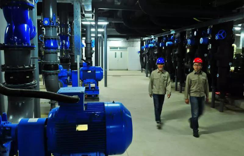 國(guó)網(wǎng)(天津)綜合能源服務(wù)有限公司員工正在檢查地源熱泵。
