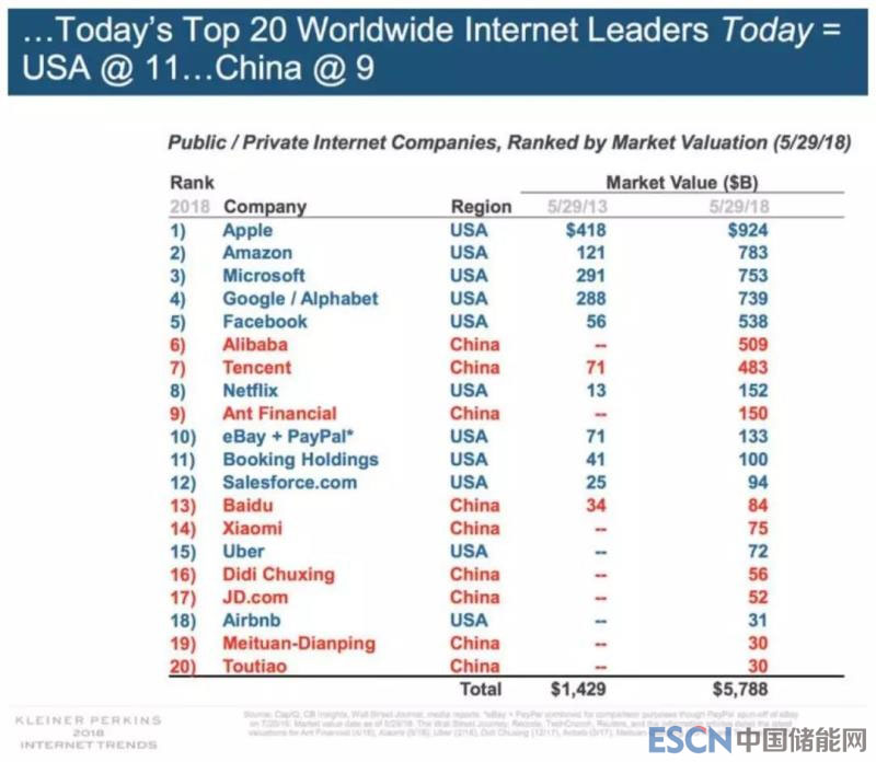 在5年前的2013年5月29日,僅有騰訊、百度兩家中國企業(yè)進(jìn)入了市值最高的前20名互聯(lián)網(wǎng)公司。
