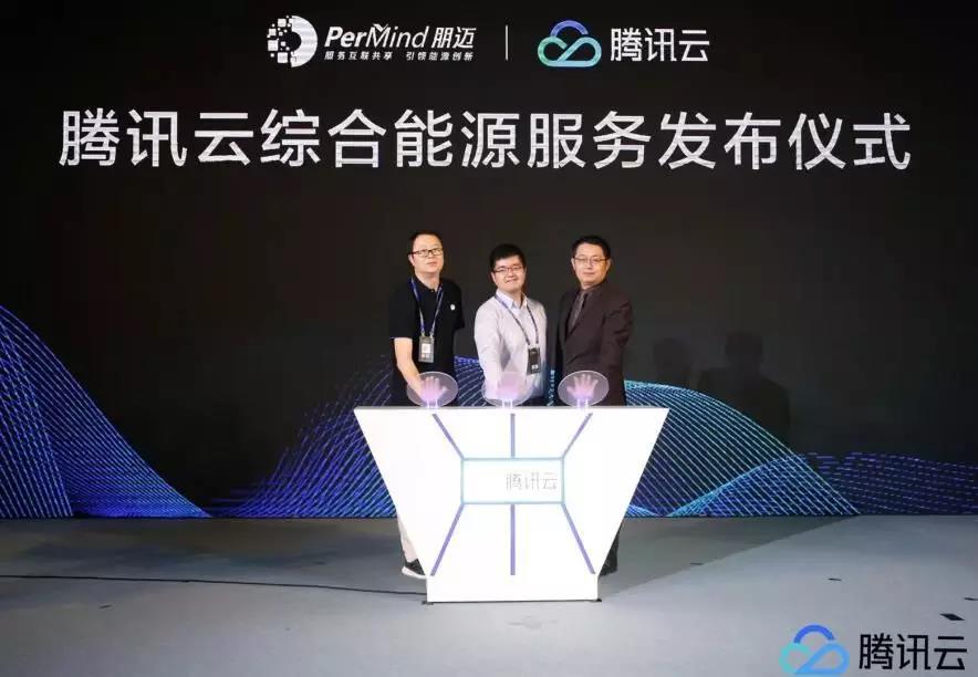 騰訊云能源業(yè)務(wù)總經(jīng)理李哲、騰訊云能源行業(yè)中心總監(jiān)柳旭東、上海朋邁能源科技有限公司董事長廖宇共同發(fā)布綜合能源服務(wù)平臺