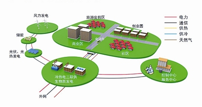 高郵市城南經(jīng)濟(jì)新區(qū)惠民型多能互補(bǔ)綜合示范工程總規(guī)劃面積87平方千米。針對(duì)該地區(qū)熱、電、冷、氣四種能源需求,東北院規(guī)劃了城南新區(qū)能源運(yùn)行監(jiān)測(cè)中心工程,對(duì)整個(gè)新區(qū)分布式電源、負(fù)荷、電力電子裝置等系統(tǒng)運(yùn)行狀態(tài)進(jìn)行監(jiān)測(cè)。在能源供給方面,該項(xiàng)目綜合集成規(guī)劃了太陽(yáng)能、儲(chǔ)能、天然氣等多種能源,實(shí)現(xiàn)了多種能源優(yōu)化配置、協(xié)同互補(bǔ)。