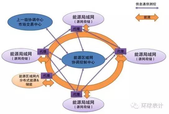 如上圖所示:未來的能源互聯(lián)網(wǎng)可能由若干自洽的能源局域網(wǎng),以及局域網(wǎng)之間的能源區(qū)域網(wǎng)絡(luò),以及更高一級(jí)的協(xié)調(diào)中心/交易中心構(gòu)成。每個(gè)能源局域網(wǎng)可能是一個(gè)用戶側(cè)的微網(wǎng)、或者是園區(qū)級(jí)的微網(wǎng);而能源區(qū)域網(wǎng)絡(luò)可以是用戶間的微網(wǎng),或者是園區(qū)間、區(qū)域級(jí)的微網(wǎng),甚至未來的能源局域網(wǎng)可以走出能源網(wǎng)絡(luò)物理邊界的限制,在虛擬電廠-虛擬負(fù)荷-虛擬網(wǎng)絡(luò)的基礎(chǔ)上,形成虛擬的能源網(wǎng)絡(luò),就像電信技術(shù)的VPN一樣。