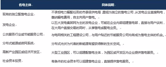 表1:售電側(cè)放開(kāi)后的六類售電主體